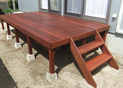 - 材料(樹種)は、ウリンなどのハードウッドから、国産の飫肥杉赤身デッキ材7種類に対応。