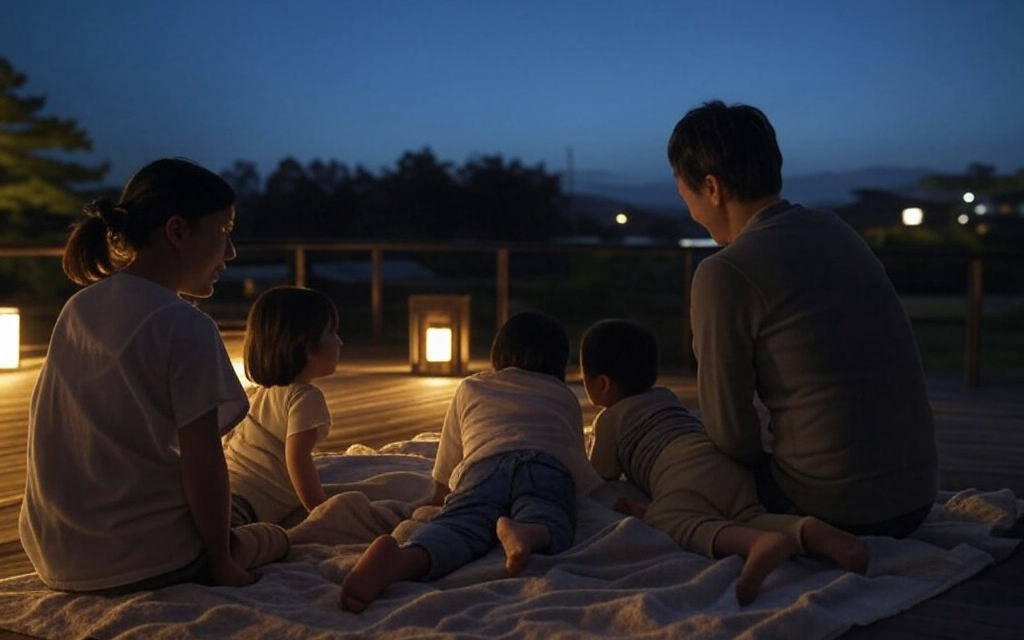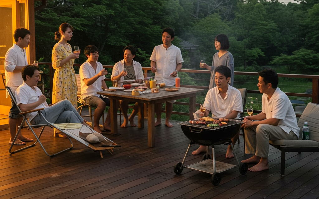 春は木漏れ日の中で風を感じる場所、夏は家族や仲間達と花火やBBQを楽しみ、秋は虫の音を聞きながら星空を仰ぐ。