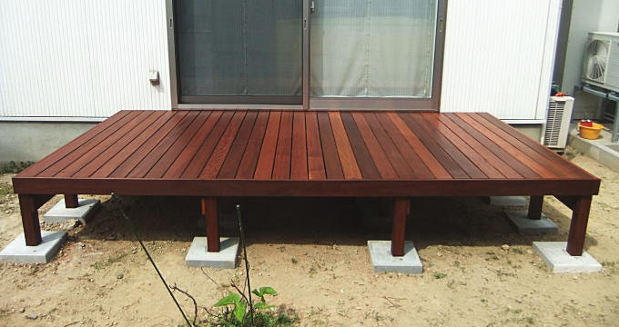 建物に対して縦目地の仕上げになります。両サイドの床板を加工せずに使えるよう